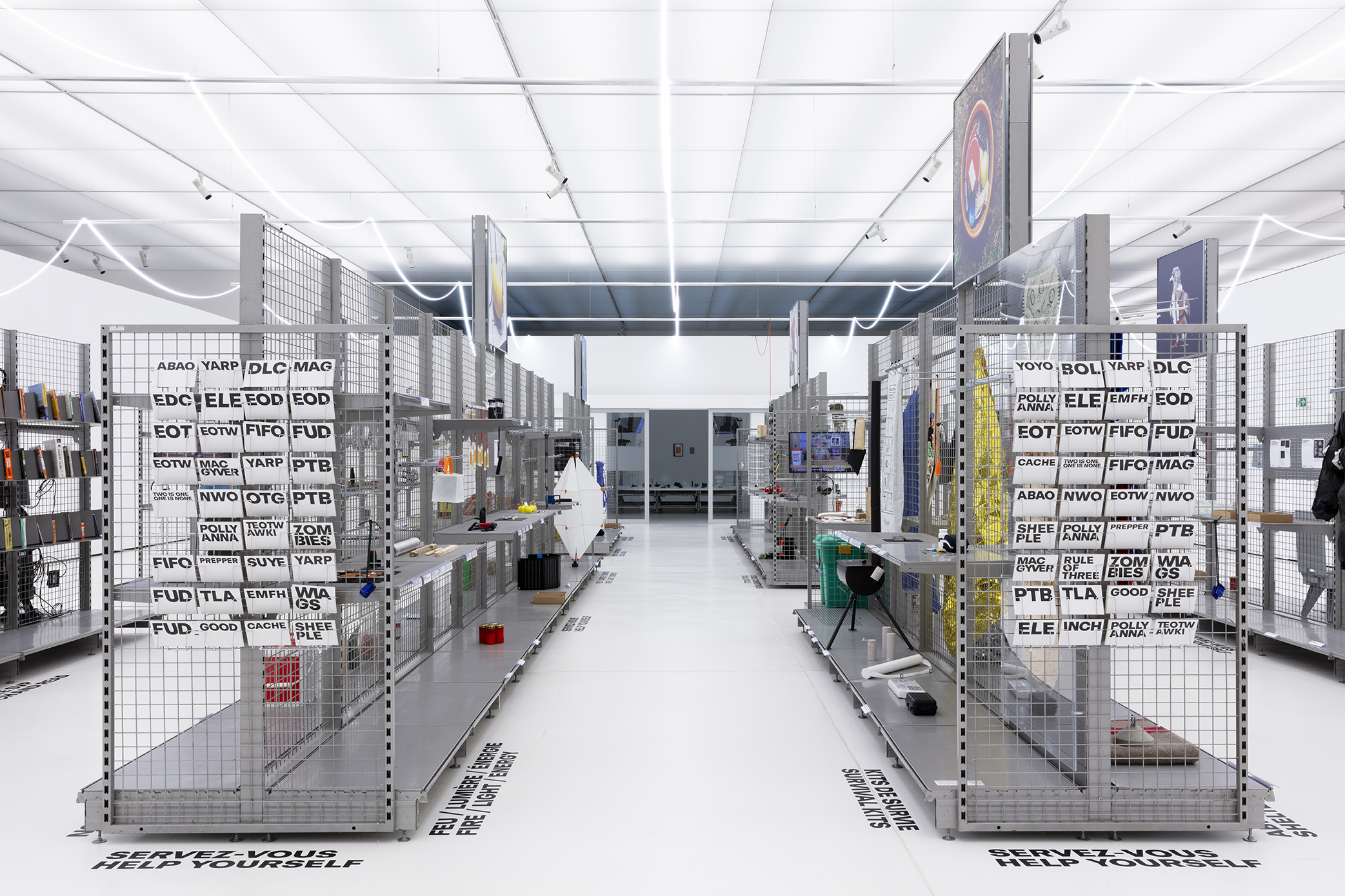 I ”The Prepper Supermarket” visas produkter och lösningar för våra grundläggande överlevnadsbehov. Foto: Etienne Malpert, mudac